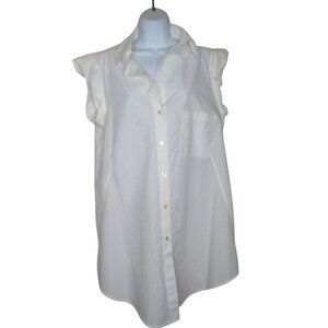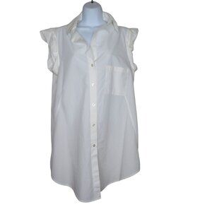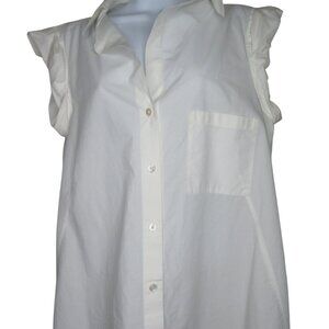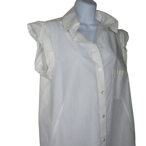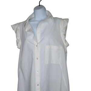 Vintage DKNY Cap Sleeve Tunic Button-Up Blouse White Cotton Womens US 8/GB 10/IT