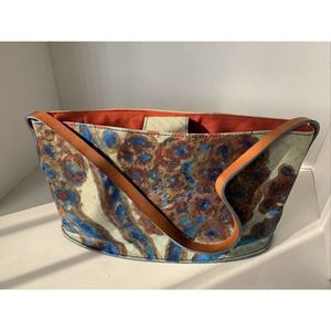 DKNY Donna Karan Collection Painted Natural Fiber & Leather Handbag Women's multi-colored. Pre-owned condition.