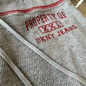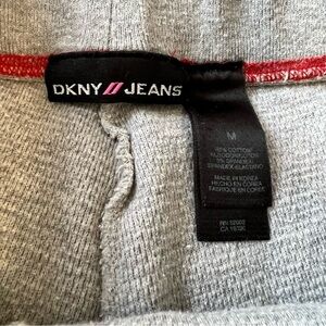 Vintage DKNY Gray Waffle Knit Baggy Cropped Red Trim M Loungewear Pants Stretch