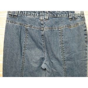 This is a cool pair of vintage jeans by DKNY, size 4. They are 100% cotton. They have extra seams sewn down the front and back of the legs (no pockets), which add to the 1990s look. The inseam is about 30". Waist is 29". Rise 9-1/2". Thanks for looking!