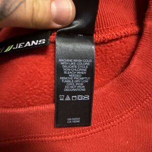 Vintage DKNY Jeans Spell out Crewneck Womens L Red Long Sleeve Stitched Sweater