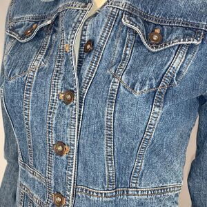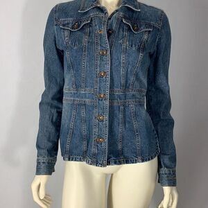 Vintage DKNY Jeans Denim Jacket Medium Y2K Mid Blue Peplum Trucker Womens
