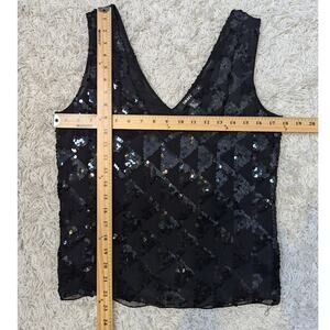 Vintage DKNY Silk Sequin Sheer Cami Tank Top Black Size Medium