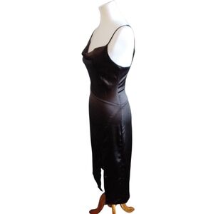 Vintage D&M Satin Slip Dress Black Draped Front High Cut Slit Midi Dress Sz XS