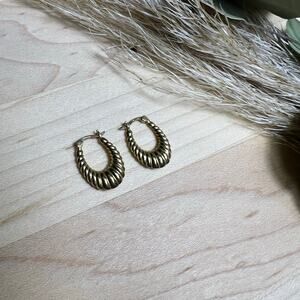 Vintage DN 14K Croissant Gold Scalloped shrimp style Hoop Earrings