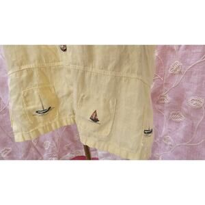 This shirt is fabulous! 100% linen with appliqued lighthouse and sailboat patches. Button up front. Small side slits.