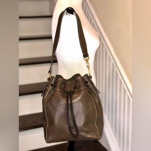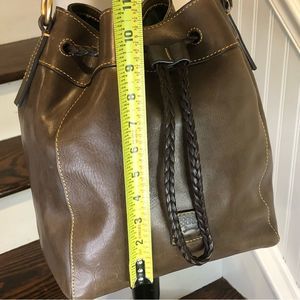 DOONEY BOURKE Charcoal Brown Leather Drawstring Bucket Feeder Shoulder Bag