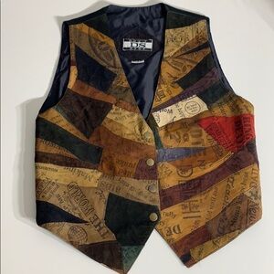 Vintage DS Don’t Stop western Leather Newsprint Vest medium patchwork women’s