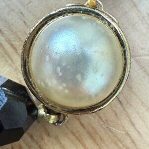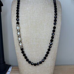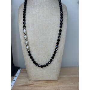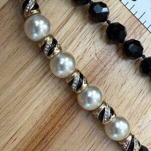 Vintage D.S.C. Swarovski Black Faceted Bead Necklace W/ Gold-Tone & Pearl Accent