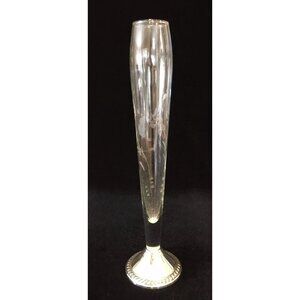 Vintage DUCHIN CREATION Etched Glass Bud Vase with Weighted Sterling Base 10"H