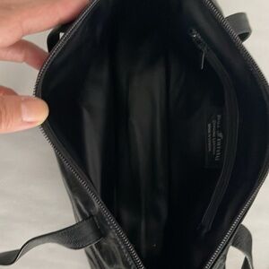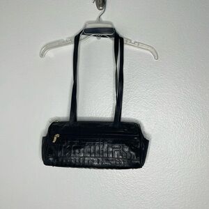 Vintage DUE FRATELLI Canada Black Embossed Double Handle Zip Shoulder Bag