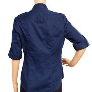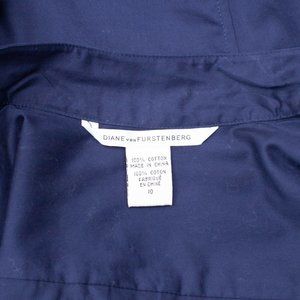 Vintage DVF Safari Blouse Navy Blue Cotton Button Down Top Size 10