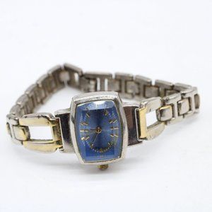Vintage Da Vanci Watch Womens Silver Tone Steel Classic Blue Quartz Dial 90s