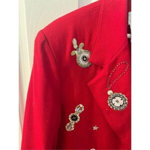 Vintage DaVinci Red Wool Clock Watch Embroidered Jacket Blazer sz L (flaw)