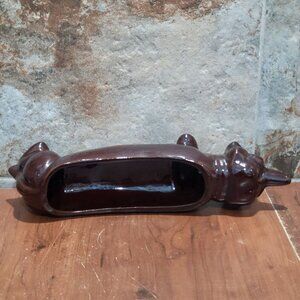 Vintage Dachshund Dog Ceramic Cracker Tray Planter Brown Glazed