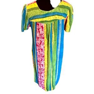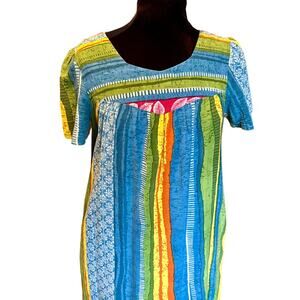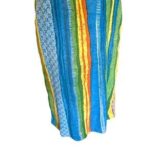 Vintage Daffodil Boho Multicolor Blue Pink Green Striped Maxi Dress Small Medium