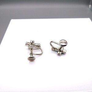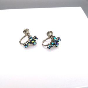 Vintage Dainty Crystal Cross Earrings with Blue AB Sparkle, Classic Tiny Screw