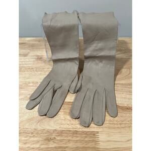 Vintage Dainty Long Leather Gloves Taupe Small JL