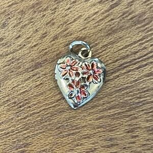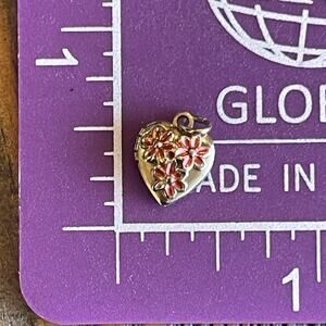 Vintage dainty mini heart locket with enamel flowers. Could be used as a charm or pendant. Please see photos for size and details
