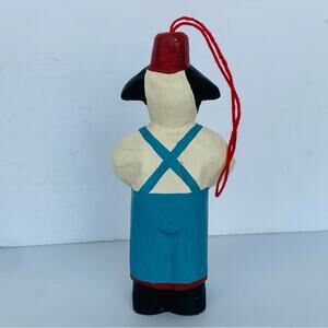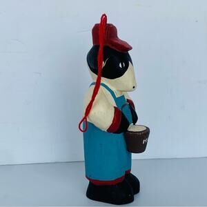 Vintage Carved Wooden Dairy Cow Farmer Christmas Tree Ornament