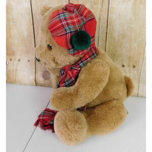 Vintage Dakin Mac Teddy Bear Scottish Plaid Hat Scarf Jointed Plush Stuff Animal