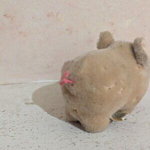 A pig so fluffy, it never gets muddy! This adorable vintage Dakin plush pig from 1981 brings pure nostalgia with its beige fur and perfectly pink tail.