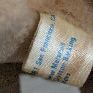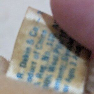 Pre-owned with minor wear, including light stains and fuzziness on the surface. Tag legible showing maker information.