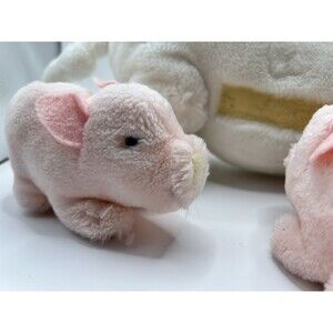 Vintage Dakin Plush White Pig with 3 Pink Piglet Babies Stuffed Animal 17 1980s