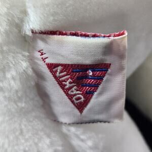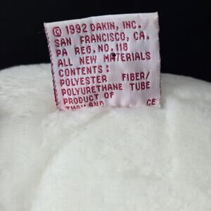The Vintage Dakin RCA Dog Plush Nipper is an 11" stuffed animal toy from 1992, featuring a white and black color scheme that mimics the iconic RCA dog. Made by Dakin, this plush toy is a collectible item that represents a piece of advertising history. Originating from Thailand, this nostalgic piece is a must-have for collectors of vintage merchandise and memorabilia.