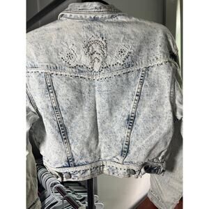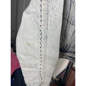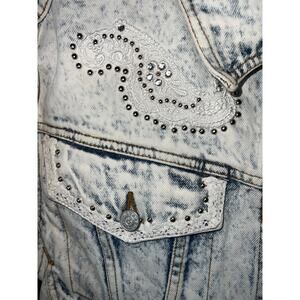 Vintage Dakota Blue Embellished Denim Jacket Lace + Pearl Trim – Women’s Large