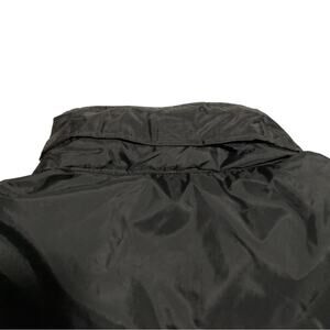 Great clean condition. Embroidery front. Vinyl on back in very good condition. Rolled up hood in collar. 2 front pockets. Drawstring waist.