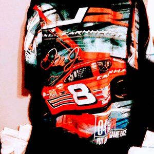 Vintage 2004 Dale Jr. #8 black shirt with all over design. Chase Authentics size XXL