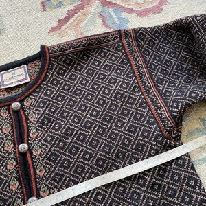 Vintage Dale Of Norway Cardigan Black Wool Sweater Large Floral Diamond