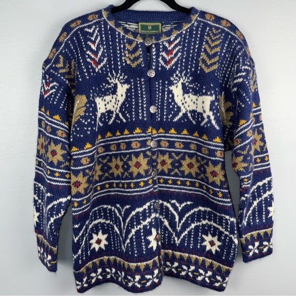Vintage Dale Of Norway Sweater Cardigan Men’s M Blue Wool Norwegian Deer