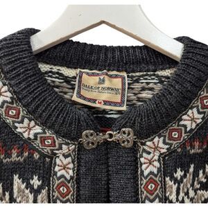 Vintage Dale of Norway Gray and Cream/Off-White Wool Nordic Cardigan Sweater with Metal Clasp Enclosure, Sz. M, Vintage Nordic Sweater
