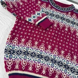 Vintage Dale of Norway Pure New Wool Nordic Fair Isle Chunky Sweater Ski Lodge