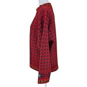 Vintage Dale of Norway Wool Cardigan Size XL Red Black Nordic Silver-tone Clasp