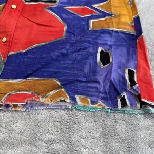 Stand out in bold retro style with this vintage Dales Western pearl snap shirt. Made in the USA from 100% cotton, it features bright abstract patterns that capture true rockabilly flair. The bottom hem shows a frayed, cut-off finisheasily hidden when tucked in.