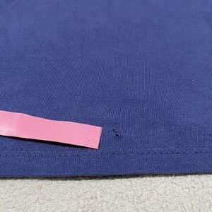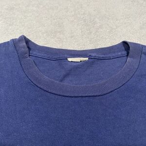 Some fading around collar. One small hole near the bottom seam on the front side of the shirt.