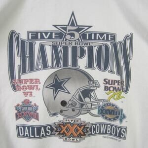 Vintage Dallas Cowboys Sweater Mens White NFL Football Five Time Champions 90s
