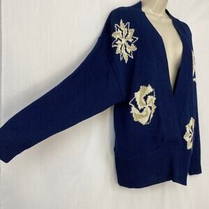 Vintage Dalton Studio Sweater Medium Womens Blue Floral Cardigan Cottagecore 70s
