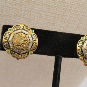 Vintage Damascene Etruscan Revival Style Clip On Earrings