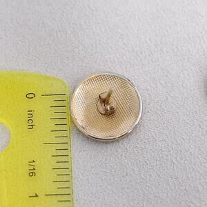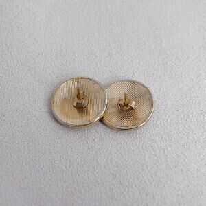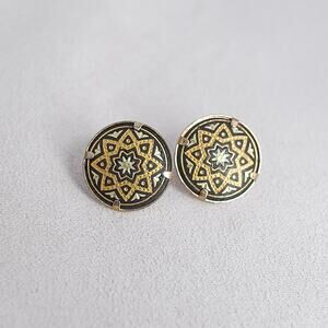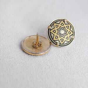 Vintage Damascene Large Stud Earrings Round Black Gold Star Pattern 1970s 1/2"