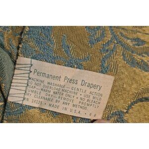 Vintage Damask Curtain Valance W Tassels Gold Brocade Blue Pinch Pleat 12x52