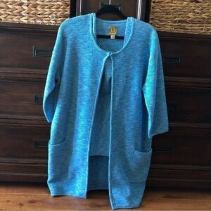 Vintage Damask blue heather stretch cotton knit sweater coat in size L. Also have matching tank top for sale in closet.