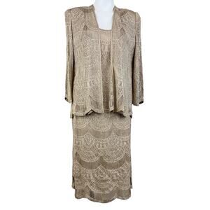 Vintage Damianou 3 piece skirt set mother of bride Gold shimmery Size Large