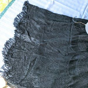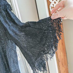 Metalic Black with slight shimmer, Lacy / Crochet knit Flapper Fringed Size Medium