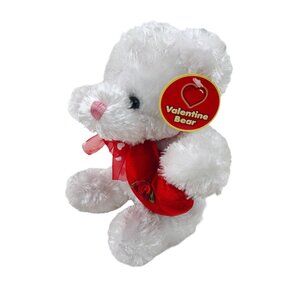 This vintage Dan Dee Valentine teddy bear is a charming plush toy featuring a white and red color scheme, perfect for expressing love. Its soft texture and heart detail make it an ideal gift.