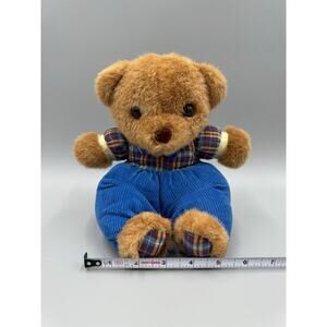 Vintage Dan Dee Teddy Bear Plaid & Blue Corduroy Pants Plush 7” No Tag