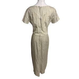 Vintage Dan Keller Tan Wiggle Dress Short Sleeve Stripes Union Label Mod 50s 60s